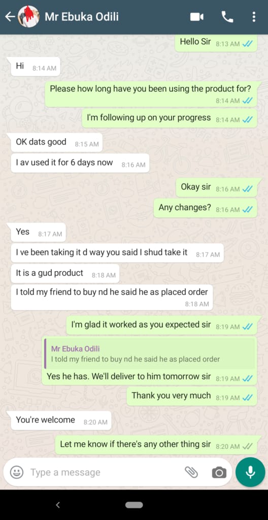 Then after 4 days of pondering over it, I decided to give it a try as I’ve always done… And guess what? I began to see some noticeable improvement in my sexual life, and in just 2 weeks after I started taking it, I was already lasting 15 minutes or more on my woman, my penis increased my size, and I was going more than 1 round of sex for the first time in my marriage…